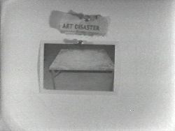 In this exercise in associative meaning and word/image conjoinment, Baldessari pins a sequence of photographs to a wall below the "headline" Art Disaster, which has been torn from a newspaper. While some of the photos are clear, others are illegible. The viewer reads the images in relation to the headline, struggling to derive meaning from each arbitrary juxtaposition. An absurd montage, a kind of disjointed narrative, emerges from the incongruities: A photograph of an empty bench precedes a photograph of a palm tree; a self-portrait of Cezanne is juxtaposed with a photograph of a butter pat in a dish. Exploiting the linguistic principles of metaphor and metonymy, Baldessari allows the viewer to interpret along two lines: vertically, from "Art Disaster" to picture below, or horizontally, from picture to picture. As demonstrated by the wonderfully surrealist narrative sequences that result, Baldessari encourages unconscious associations and subliminal meanings to emerge from the juxtaposition of found objects.