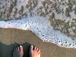 Another exploration in the Past Life series, Hodel recalls a life in Tibet and a love shared with her brother that cannot be matched; they are separated when he joins a monastery, and she is left to journey alone. We see Hodel's feet walking on a beach; the water erases her footprints, just as the passage of time obscures past events.