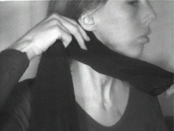 This selection of short video works by Maughan includes sketches colored by her satirical wit and eclectic persona. In works such as Scar/Scarf, where she desperately tries to cover a scar with style, and The Way Underpants Really Are (1975), an unsexy reveal of her tattered, oversized underpants, Maughan explores the fear and shame that comes from failing to live up to the standards of a society obsessed with flawless beauty. Eerie works like Coffin From Toothpicks and Frozen & Buried Alive (1974-75) allude to a dark fascination with mortality, yet sustain humor via the absurdity of her characters' stories.