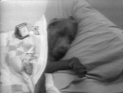 Reel 4 includes deadpan conceptual monologues, parodic commercials and demonstrations, and absurdist anecdotes with Man Ray, including visual one-liners in which the dog is subjected to hilarious indignities: Man Ray sleeps peacefully until startled by a loud alarm clock; poses awkwardly with his paw on a ball; endures a barrage of falling paper. Also included are classic monologue pieces, in which Man Ray serves as the comic foil for Wegman's droll fictions. In New and Used Car Salesman, Wegman hoists the struggling dog onto his lap to prove his sincerity to the "television" audience. In the classic Spelling Lesson, Man Ray appears contrite as Wegman corrects his spelling test: "You spelled it B-E-E-C-H which is like... well, there's a gum called Beech-nut, but we meant beach like the sand. So it should have been B-E-A-C-H."