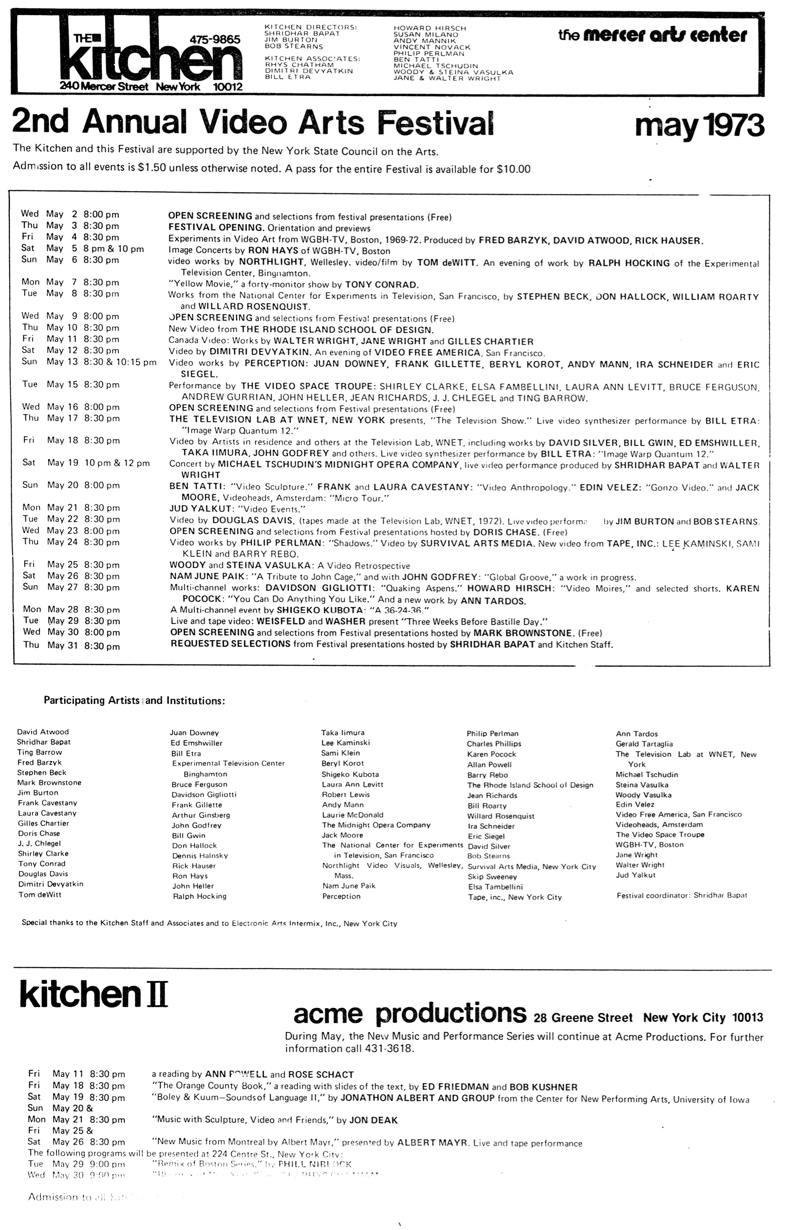 This program lists the performances announced in the press release above, taking place at the Kitchen from March 8-10, 1973.